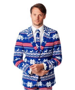So this may not necessarily be a Christmas sweater but guys should have the right to mix it up! And no one can really judge you for wearing this because they are probably wearing an ugly Christmas sweater. This suit is a playful mix between Christmas fun and modern style. |