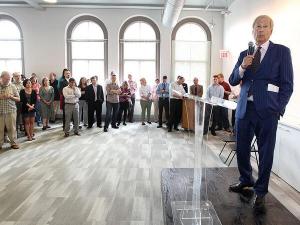 Katz, 72, addresses staff employers to inform them why he bought out the Inquirer's other partners. (Michael Bryant/Inquirer)