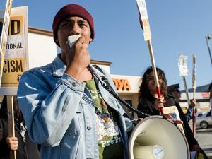 Activists protest the ticketing and incarceration of countless South L.A. public students.
