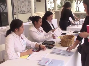 A woman signs in for Mount Saint Mary's third annual Ready to Run program. (Maritza Moulite/Neon Tommy)