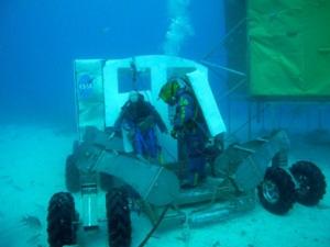 Diving gear and weighted backpacks allow the NEEMO 14 crew to simulate spacewalks.