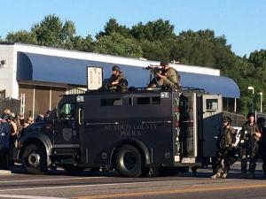 St. Louis County police prepare for standoff with protestors. (@BmoreConetta/Twitter)