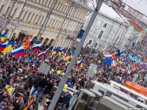 Read more...Protestors gather to oppose Russia's intervention in Ukraine.