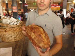 Clark Street Bread's Zack Hall puts his goods on display in downtown's Grand Central Market. (Sara Tiano/Neon Tommy)